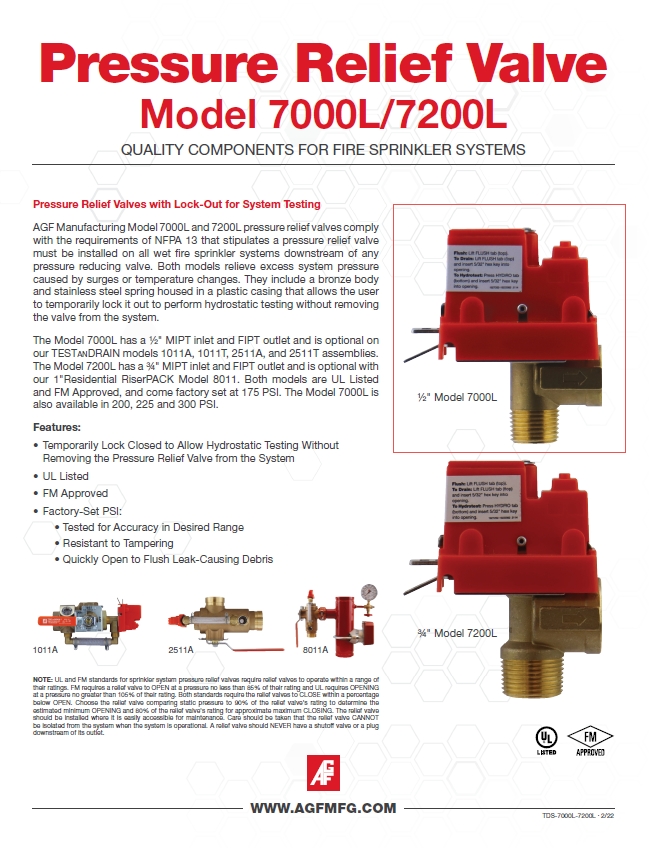 AGF" Lockeable Pressure Relief Valve, M.7200L, 3/4", 175 PSI