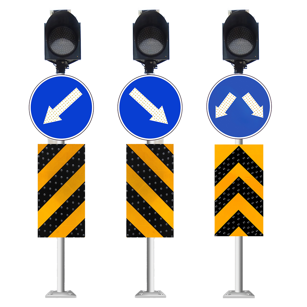 ชุดป้ายเตือนหัวเกาะกลางถนน โซล่าเซลล์ ชิดซ้าย-ขวา