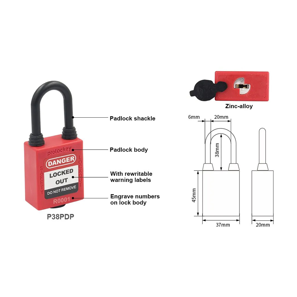 SAFETY PADLOCK (38mm Nylon Shackle,Dia 6mm 1Key /lock)