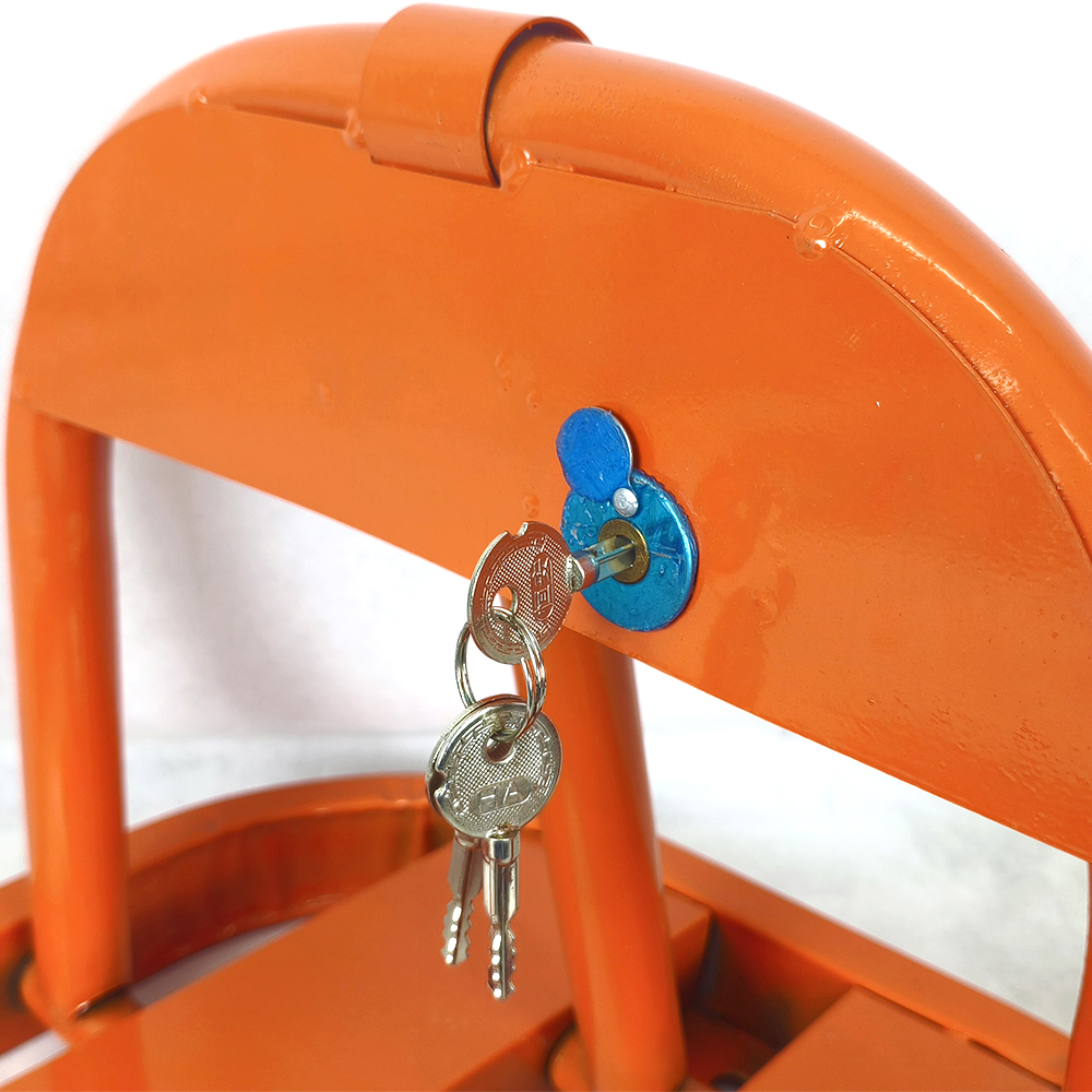 ที่กั้นที่จอดรถแบบพับได้ ระบบล็อกด้วยมือ ทำจากเหล็กแข็งแรงทนทาน ขนาดเมื่อตั้งขึ้น 600x500x350 มม.เหมาะสำหรับจัดการพื้นที่จอดรถส่วนตัวและเพิ่มความปลอดภัย