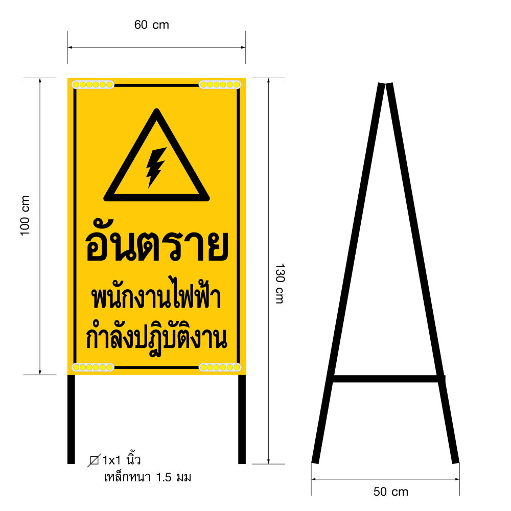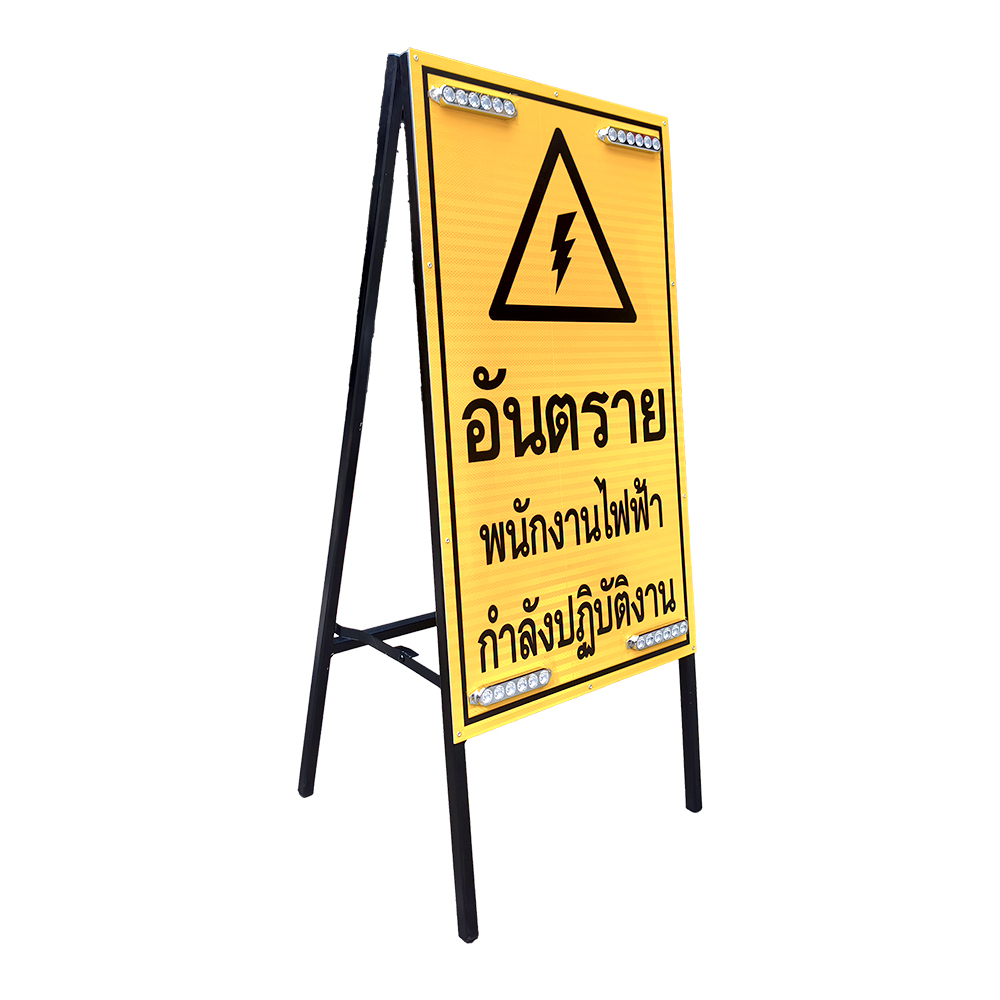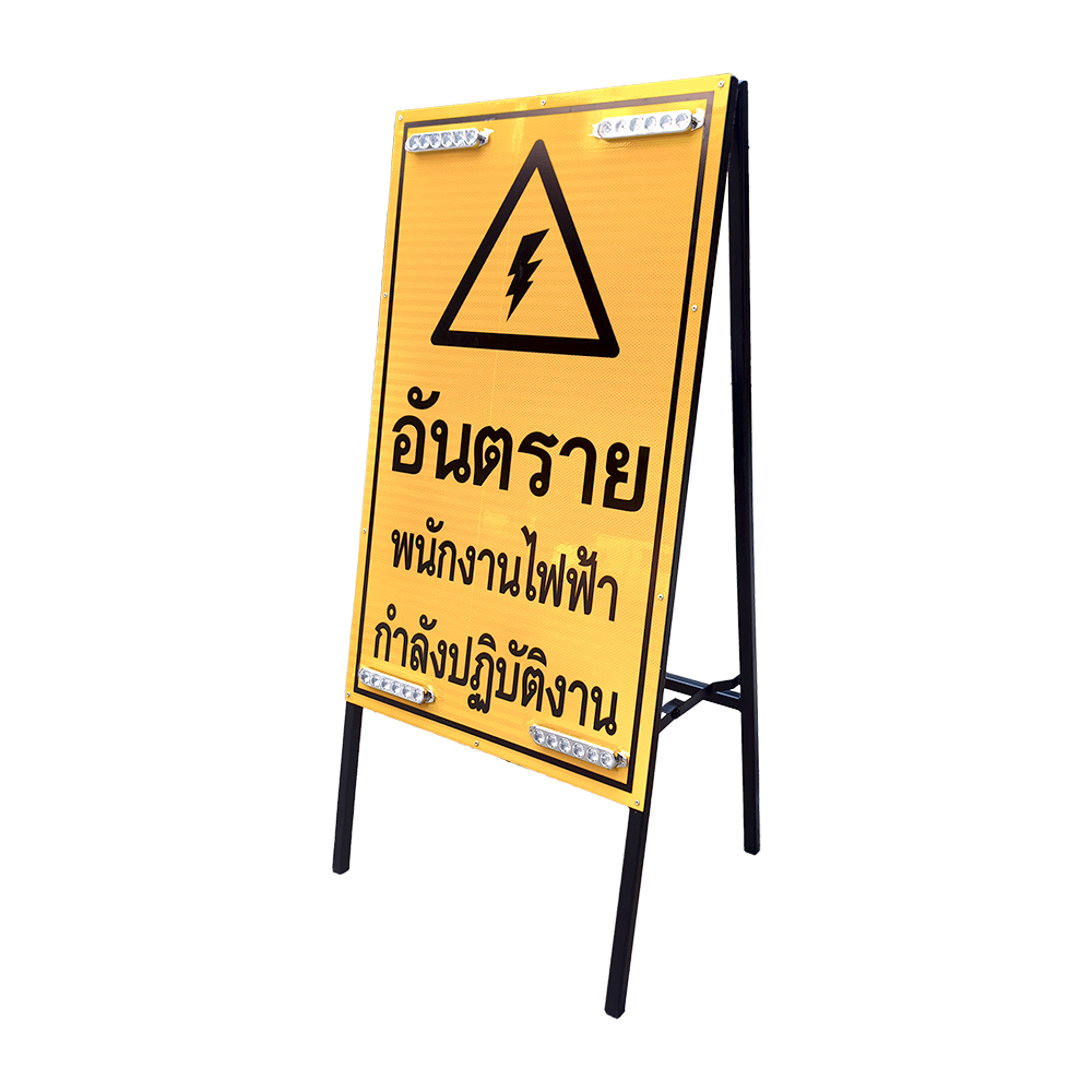 ป้ายเตือนอันตรายแบบตั้งพื้น สำหรับใช้แจ้งเตือนพื้นที่ที่มีการปฏิบัติงานด้านไฟฟ้า ช่วยเพิ่มความปลอดภัยให้กับผู้สัญจรและผู้ปฏิบัติงาน