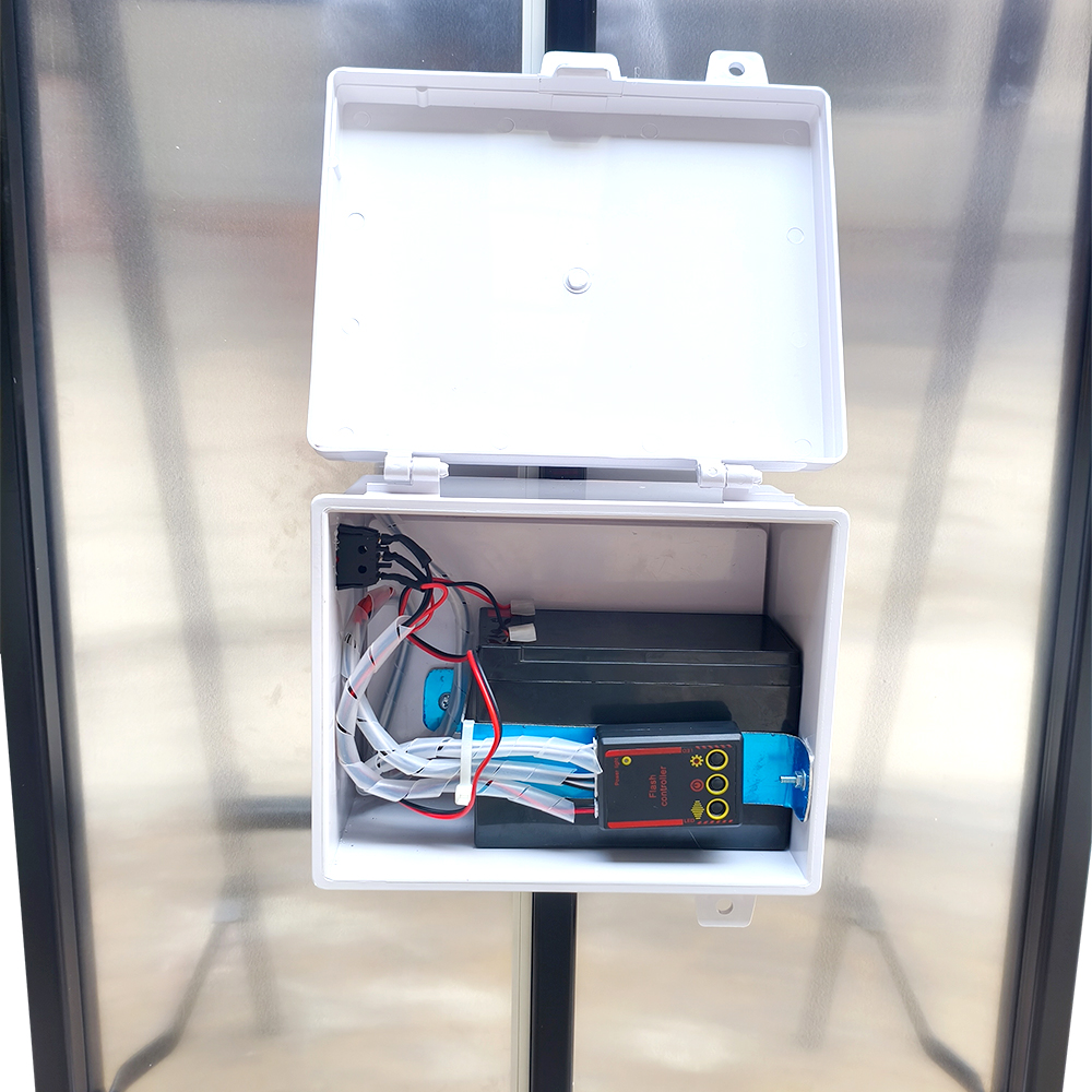• ไฟกระพริบ LED ติดตั้งด้านบนและด้านล่างของแผ่นป้าย