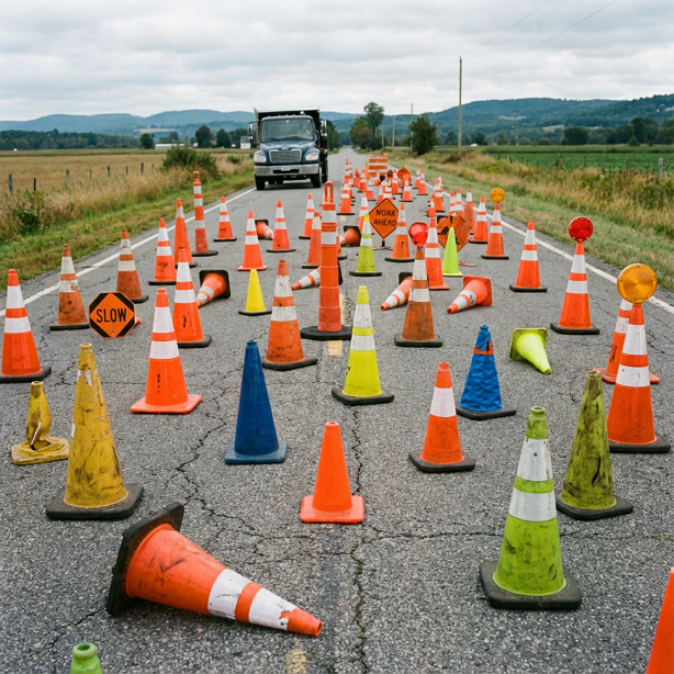 การใช้งานและข้อควรระวังในการกรวยจราจรในงานก่อสร้าง
