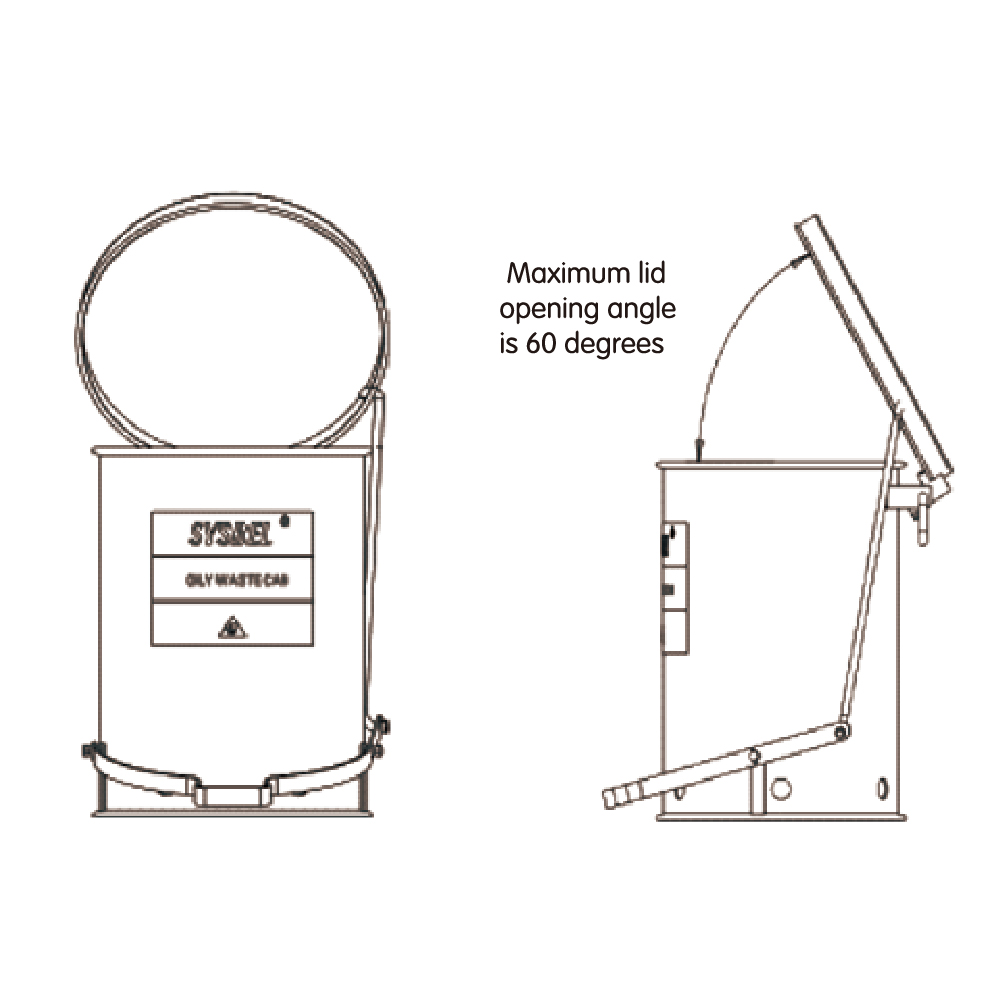 มีฝาปิดแบบพิเศษซึ่งมีมุมเปิดไม่เกิน 60 องศา ปิดเองอัตโนมัติได้สนิท ช่วยให้มั่นใจว่าถังจะปิดสนิทเมื่อไม่มีแรงกดจากภายนอก เพื่อควบคุมองค์ประกอบ 3 ประการ(ออกซิเจน, เชื้อเพลิง, ความร้อน) ที่ทำให้เกิดไฟไหม้อย่างมีประสิทธิภาพ
