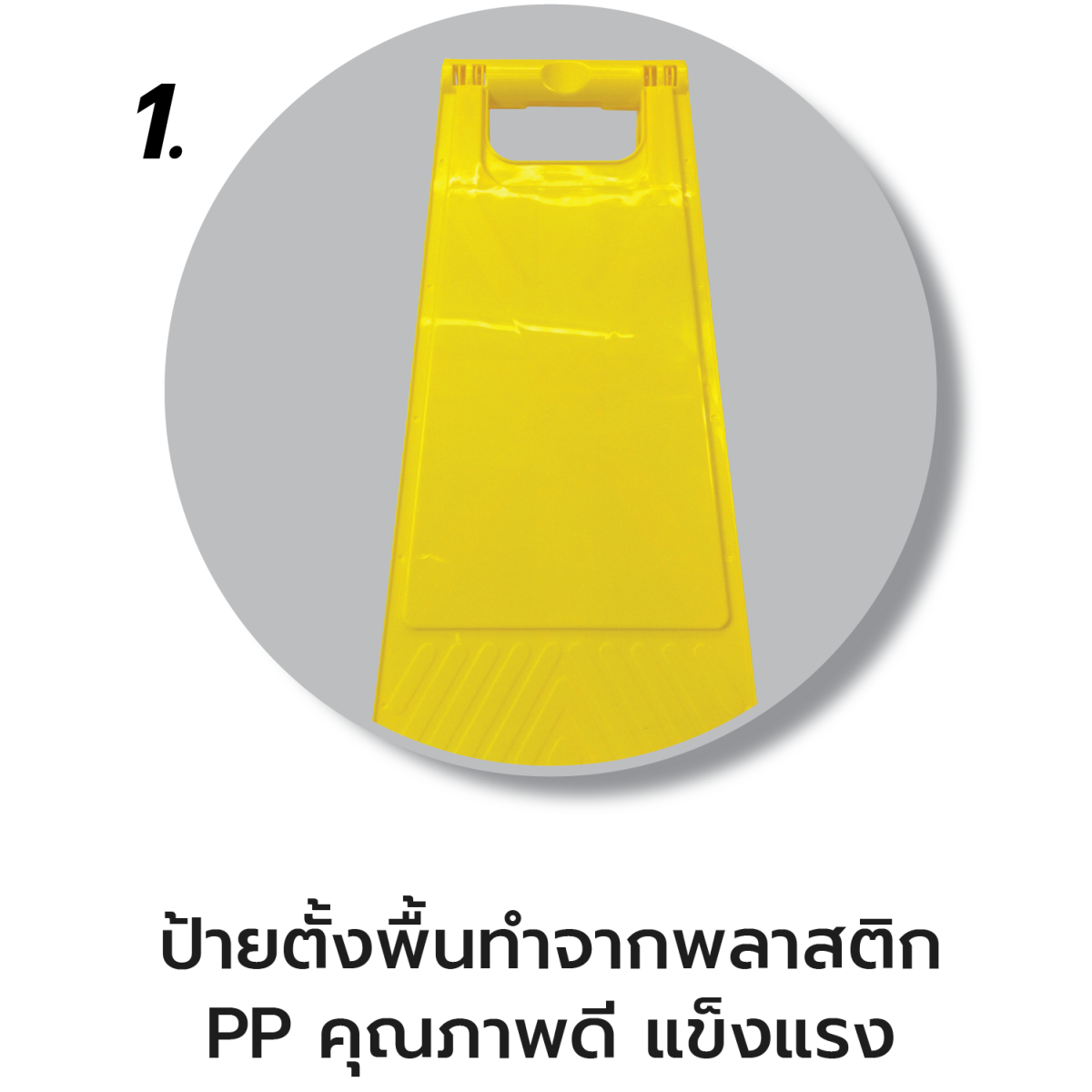ป้ายตั้งพื้นสีเหลือง รุ่น A1 เป็นป้ายที่ผลิตจากพลาสติกอย่างดี มีน้ำหนักเบา