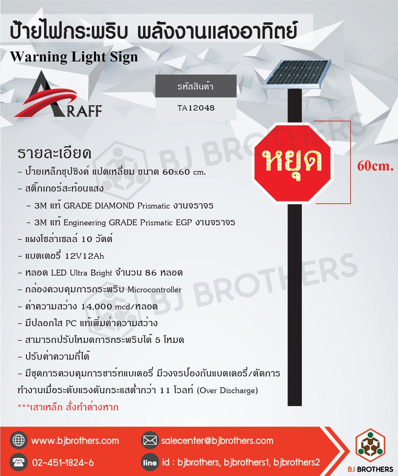 รายละเอียดป้ายหยุดไฟกระพริบ โซล่าเซลล์