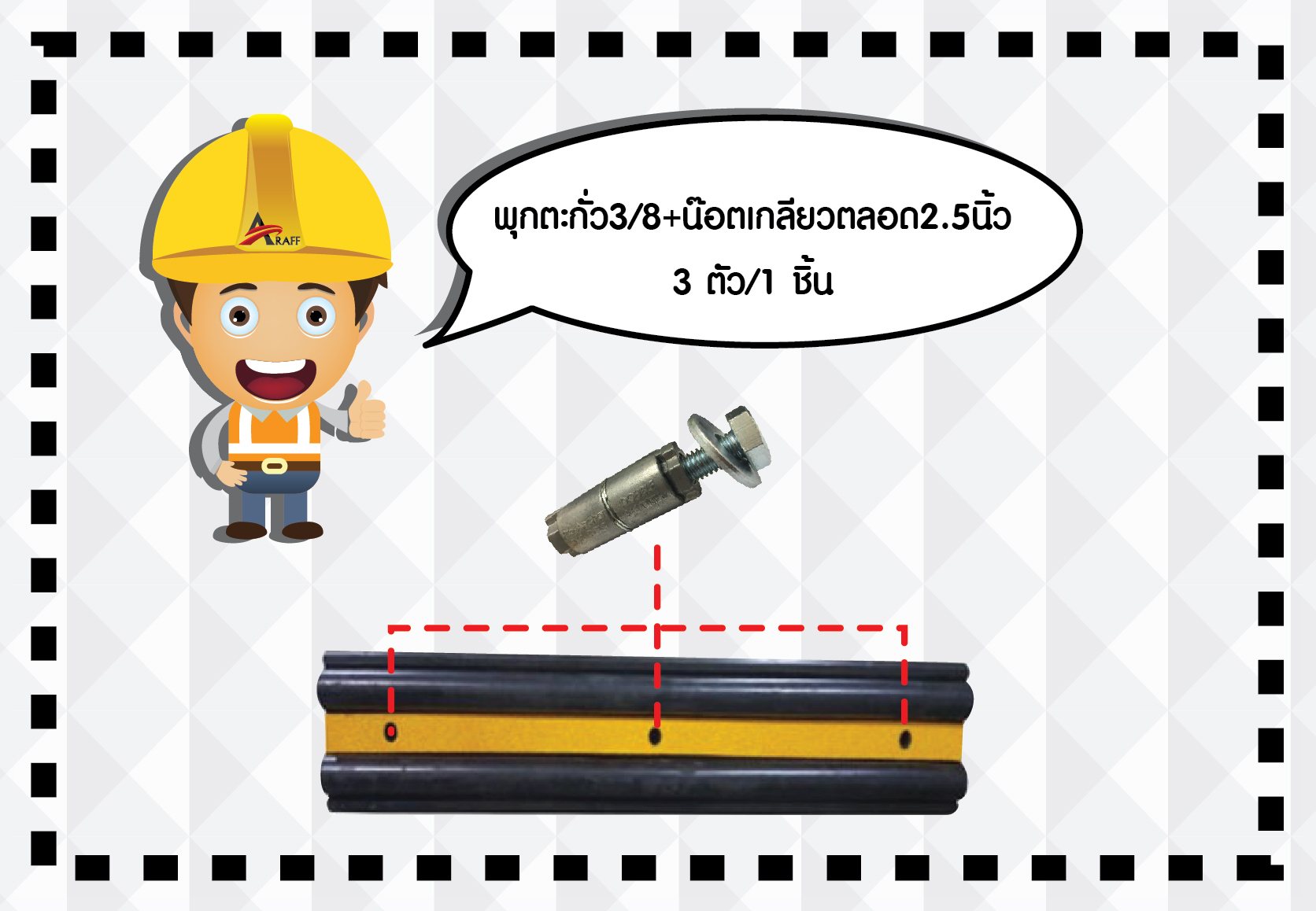 - ติดตั้งด้วยพุกตะกั่ว 3/8 นิ้ว 3 จุด