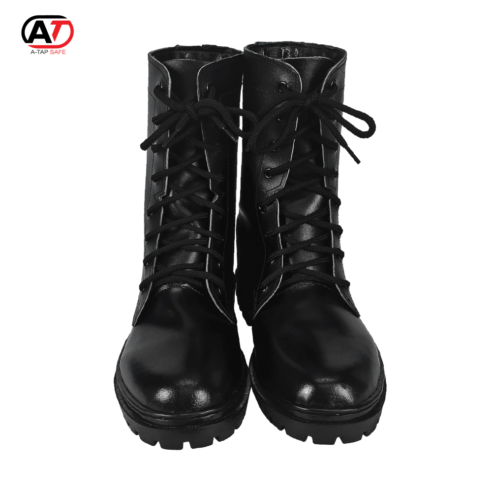 รองเท้าคอมแบท รองเท้าปีนเสาไฟฟ้า รองเท้า รด. รองเท้าเดินป่า รองเท้าทหาร ใช้ในการทำงานกิจกรรมกลางแจ้ง รองเท้าคอมแบทมีลักษณะที่ทนทาน ปลอดภัย และสามารถรองรับแรงกระแทกได้ดี วัสดุหนังวัวแท้ พื้นยางธรรมชาติแท้ (ยางไทยใหม่) ทนทาน เย็บพื้นรอบตัว ภายในเสริมไฟเบอร์รองรับเท้า ไฟไม่ดูด