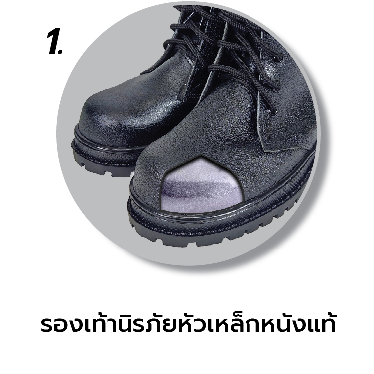 • รองเท้าเซฟตี้หัวเหล็ก และเป็นรองเท้าหนังแท้