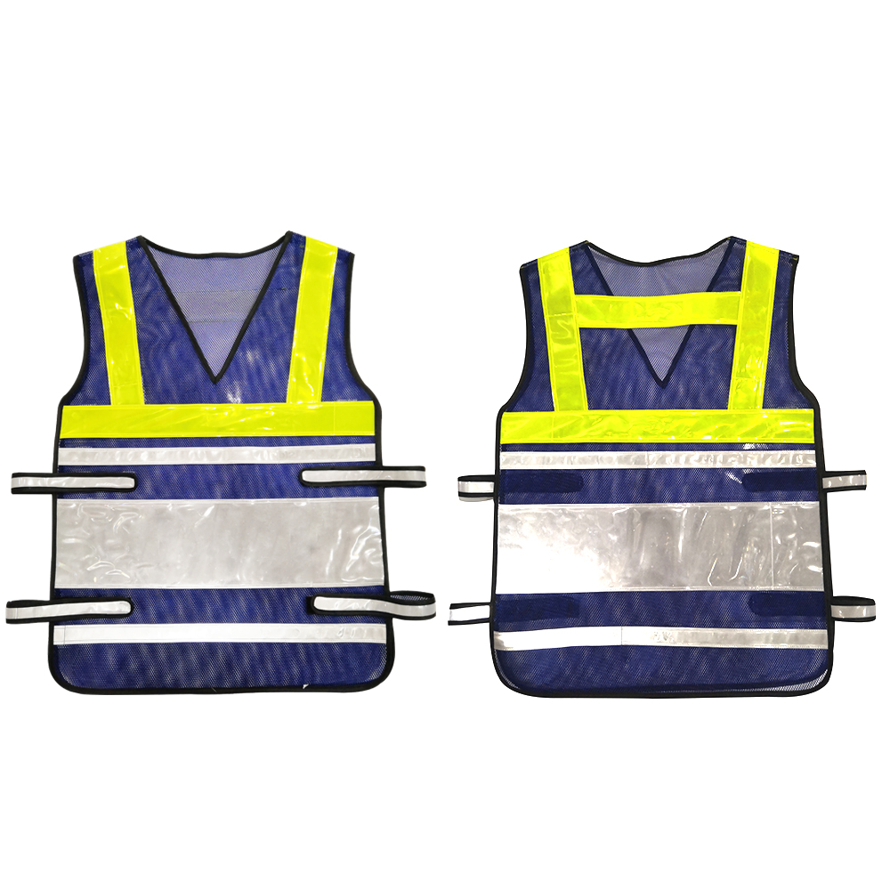 เสื้อสะท้อนแสง ตำรวจจราจร ตัวชุดด้านหน้าเป็นคอเว้าหน้า ติดแถบสะท้อนแสง และโลโก้หน่วยงาน