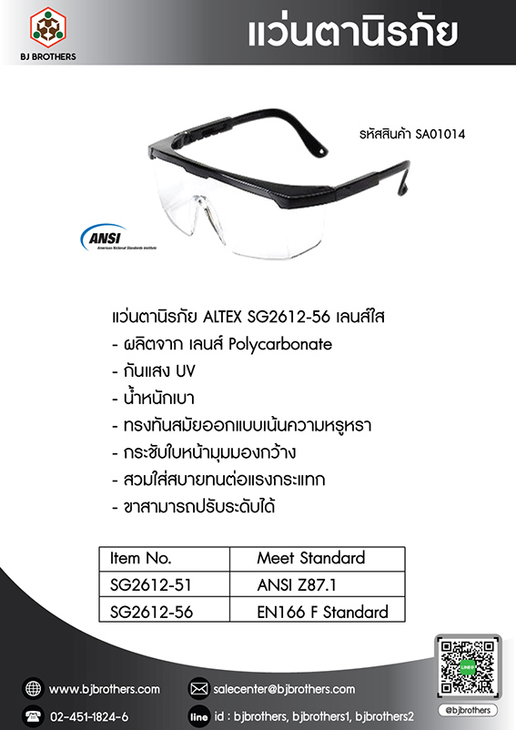 แว่นตานิรภัย ALTEX เลนส์ดำ