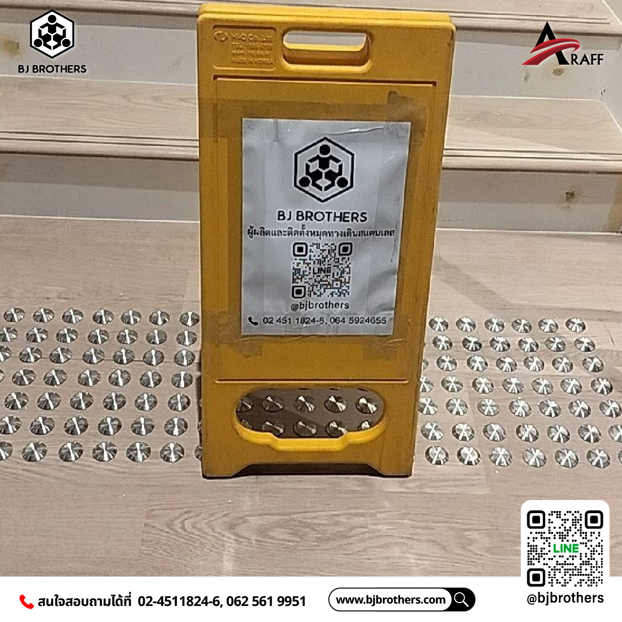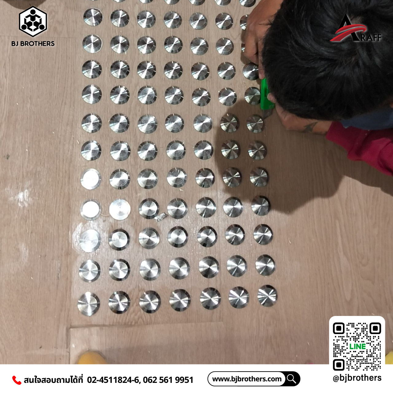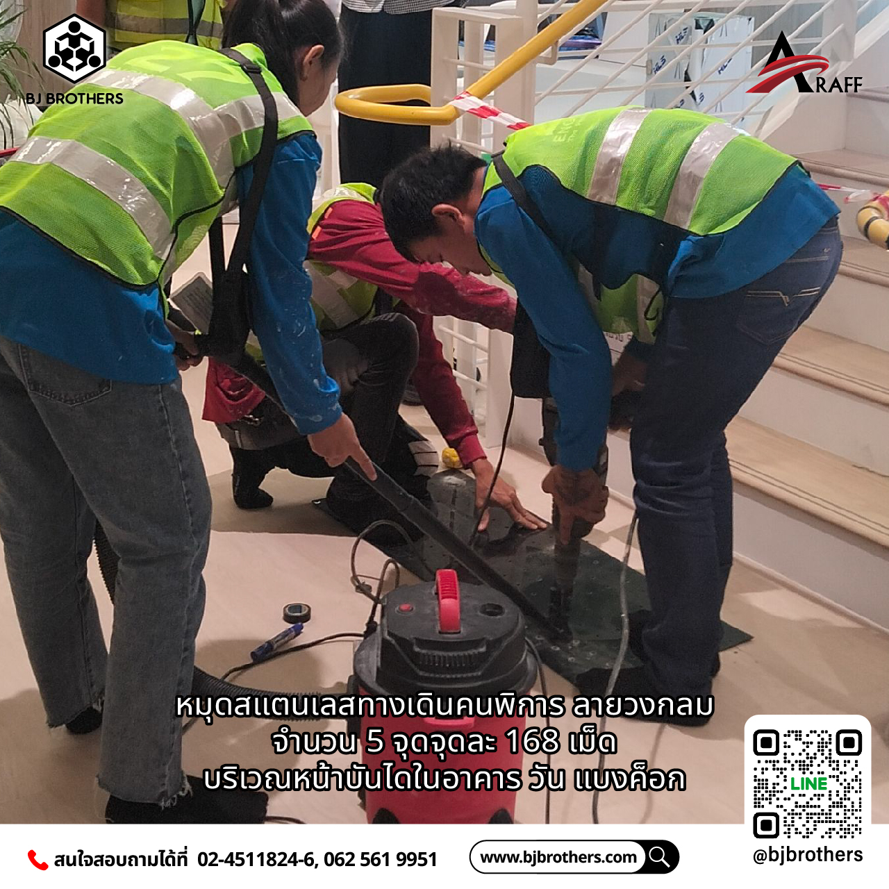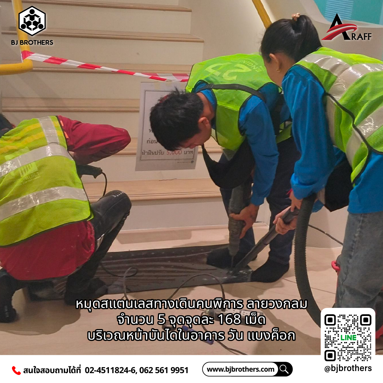 โครงการติดตั้ง หมุดสแตนเลสทางเดินคนพิการ ลายวงกลม จำนวน 5 จุดจุดละ 168 เม็ด บริเวณหน้าบันไดในอาคาร วัน แบงค็อก จำนวน ที่ติด 1008 ตัว