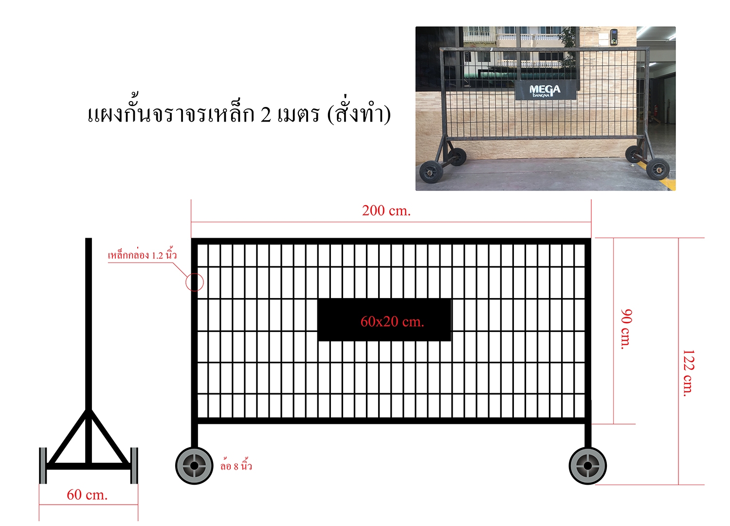 - ขนาดของแผงกั้นจราจร 1.5 x 2 เมตร