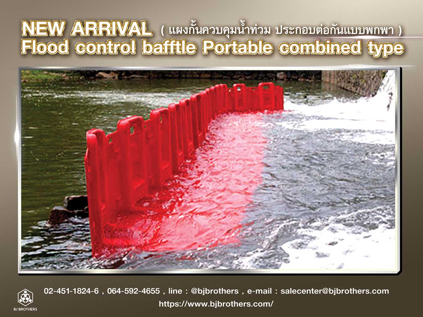 เป็นแผงกั้นป้องกันน้ำท่วมชั่วคราวที่สามารถยืนได้ด้วยตัวเองสามารถต่อแผงกั้นควบคุมน้ำท่วมลงกับพื้นผ่านแรงดันของน้ำเอง