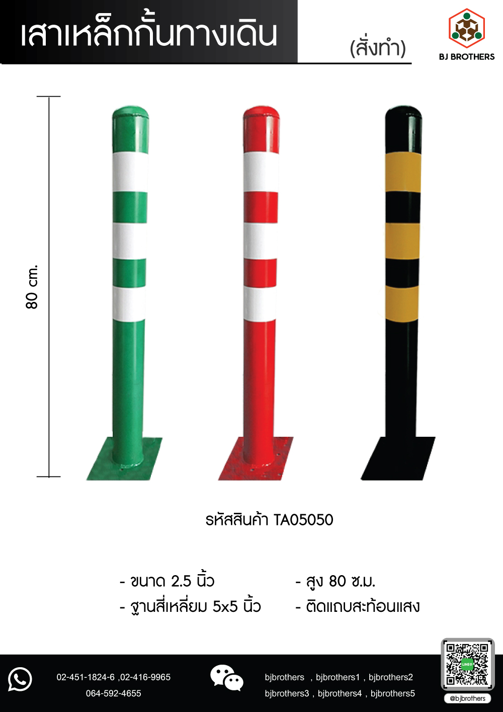 - เสาจราจรมีขนาด 2.5 / 3 / 4 / 5 นิ้ว