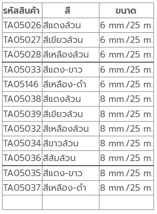 | TA05035 | สีแดง-ขาว | 8 mm./25 m. |
