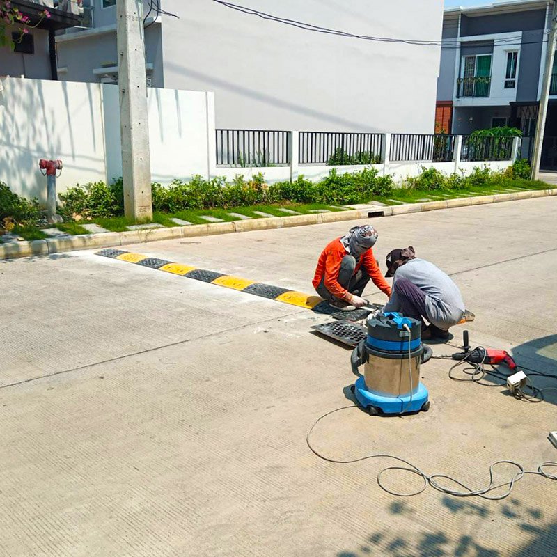 การติดตั้งยางชะลอความเร็ว เพื่อลดความเร็วการจราจรภายในโครงการหมู่บ้าน